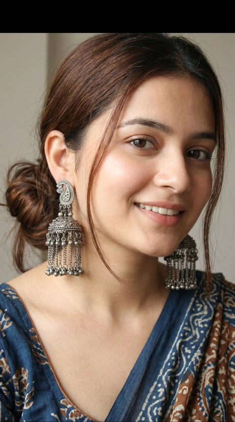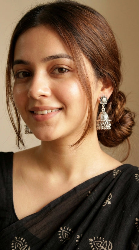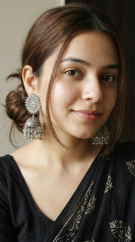 Intricately Detailed Premium Oxidised Finish Sun Dial Jhumka Earrings