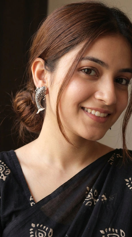Oxidised Finish Fish Shape Stud Earrings