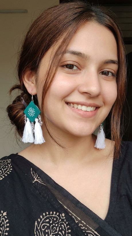 Hand Painted Fabric Earrings with Pom Poms