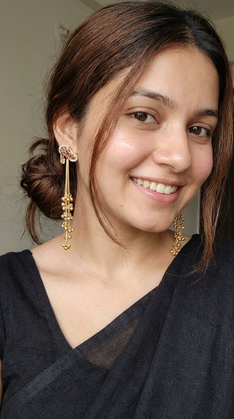 Ghungroos Embellished Golden Chain kashmiri Long Dangler Earrings