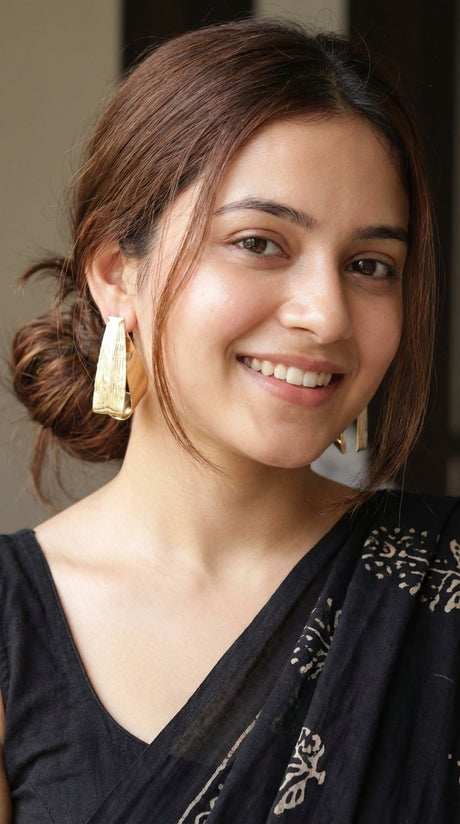 Black Ikat Fabric Earrings with Metal Detailing