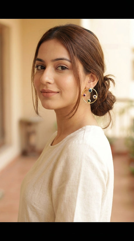 Multi-Color Evil Eye Embedded Gold Finish Hoop Earrings