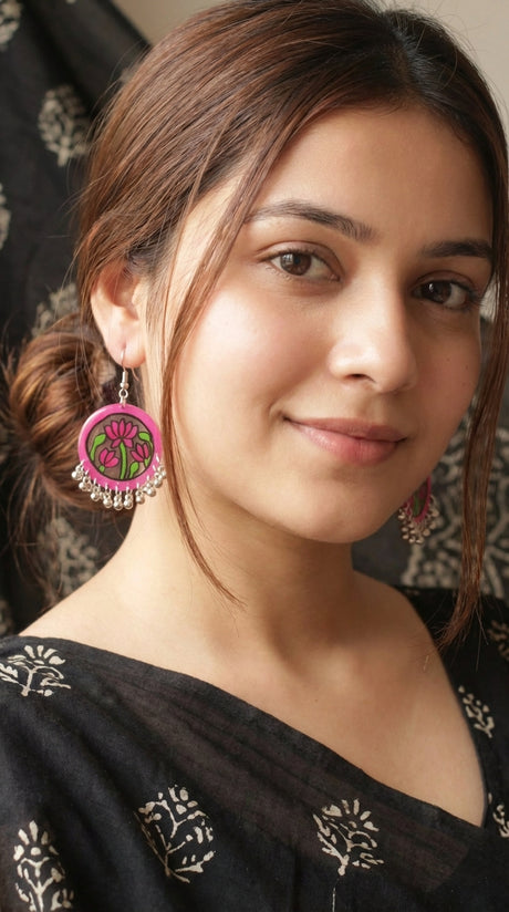 Hand Painted Terracotta Clay Dangler Earrings
