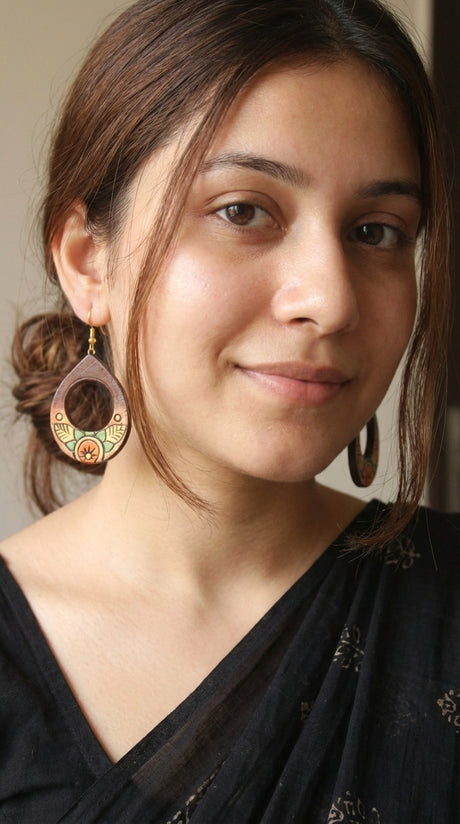 Hand Painted Terracotta Clay Tear Drop Earrings