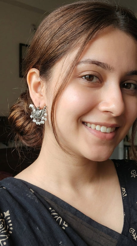 Intricately Crafted Peacock Earrings with White Beads