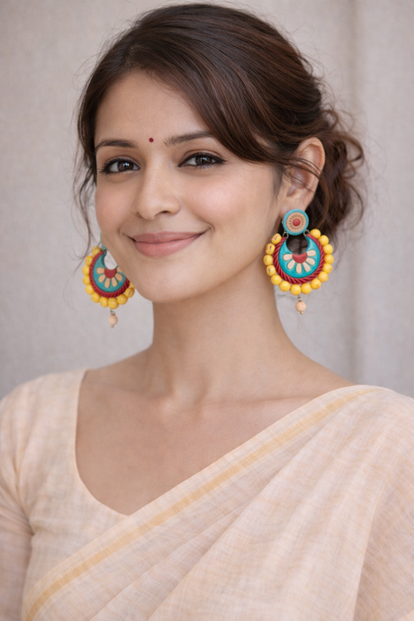 Yellow and Blue Crescent Shaped Terracotta Chandbalis