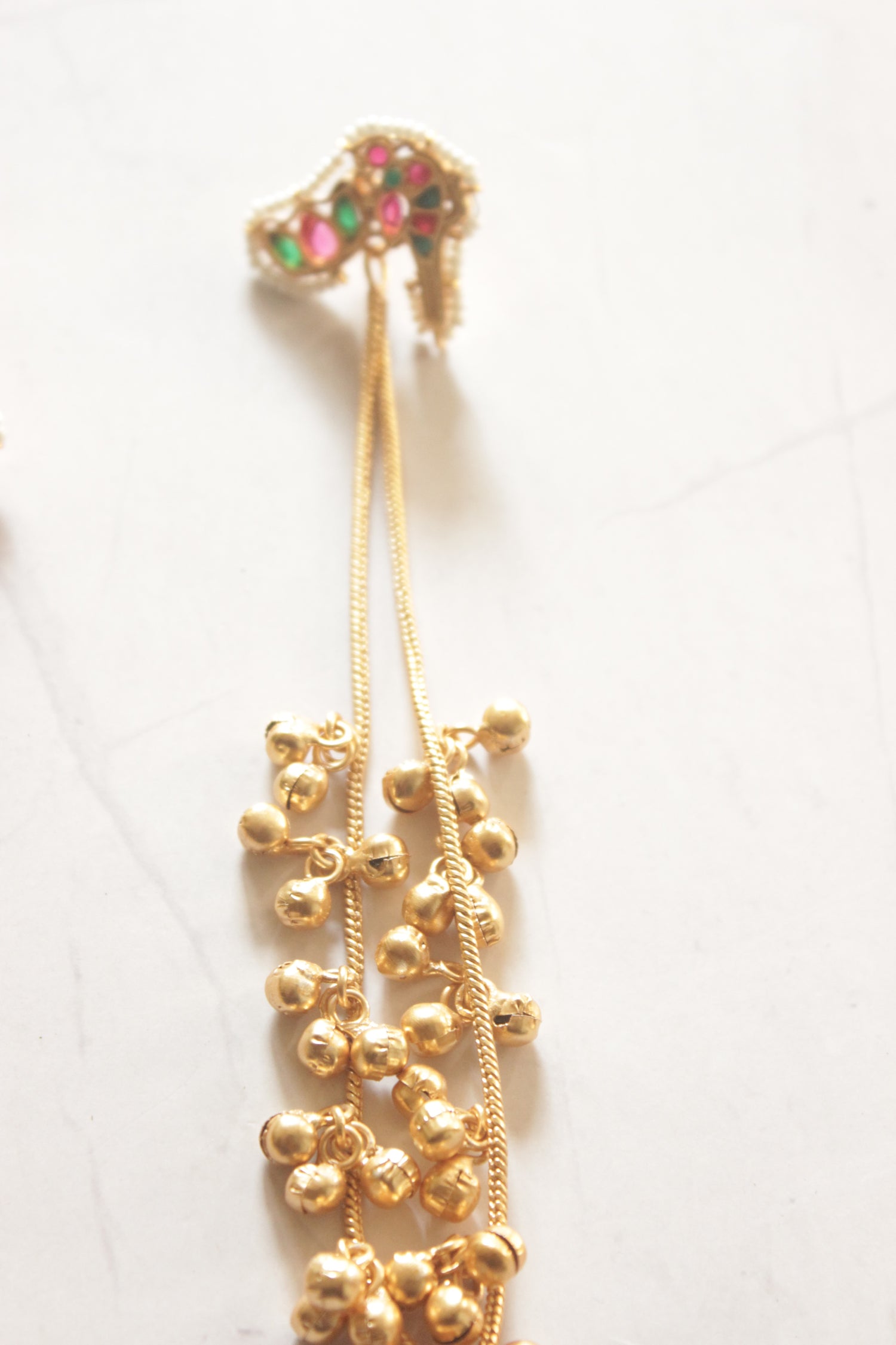 Ghungroos Embellished Golden Chain kashmiri Long Dangler Earrings