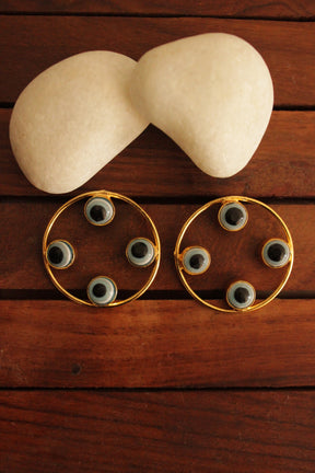 White Evil Eye Embedded Gold Finish Hoop Earrings