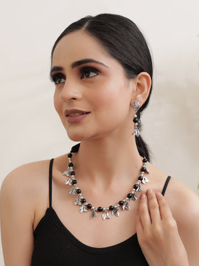 Metal Necklace Set with Glass Beads and Leaf Motifs