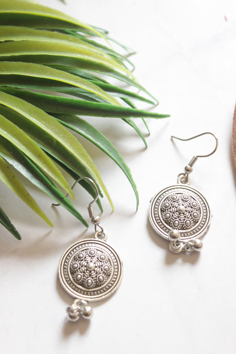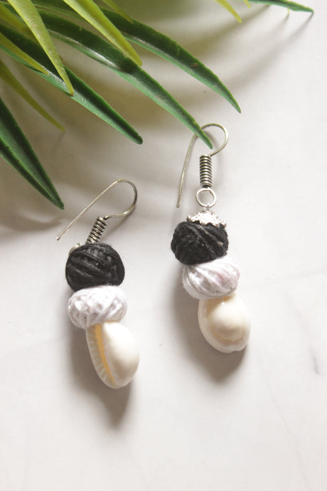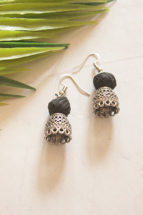 Fabric and Mirror Work Black Dangler Earrings with Metal Trinkets