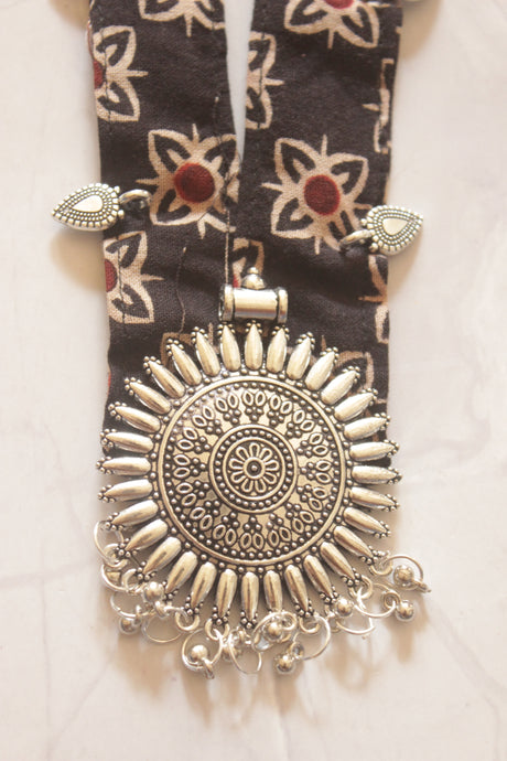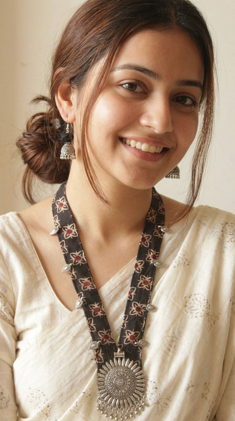 Kantha Embroidered Black and White Fabric Handmade Necklace