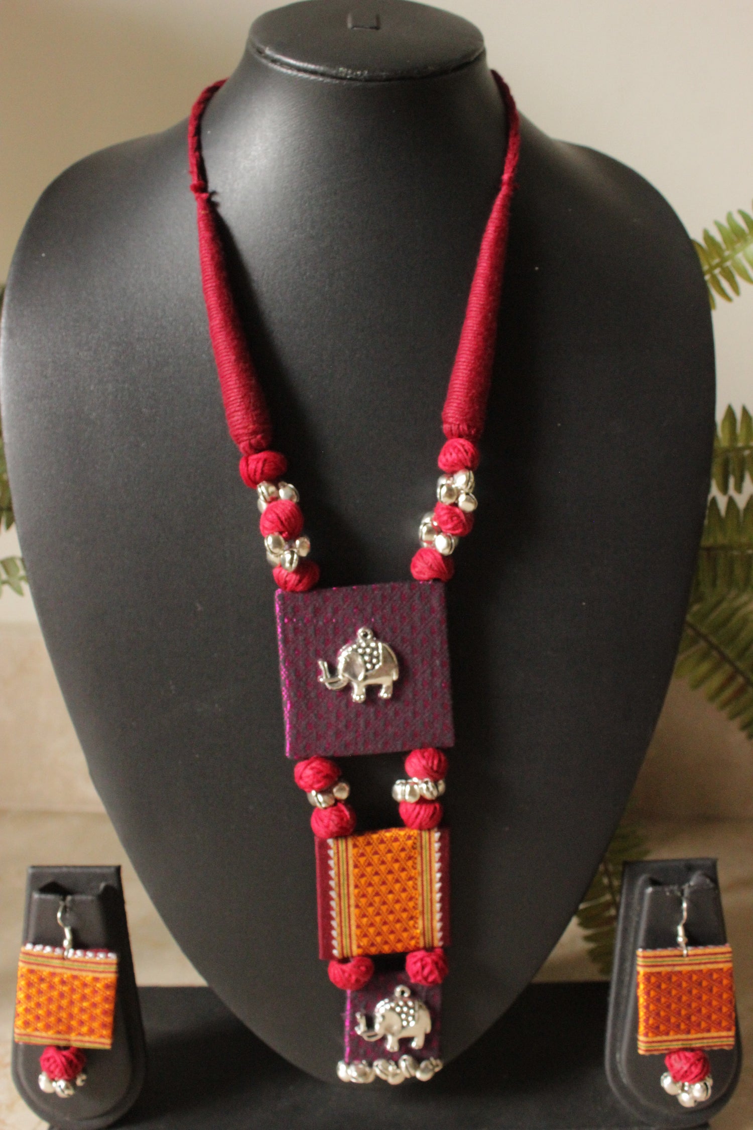 Brocade Fabric Muted Adjustable Length Necklace Set