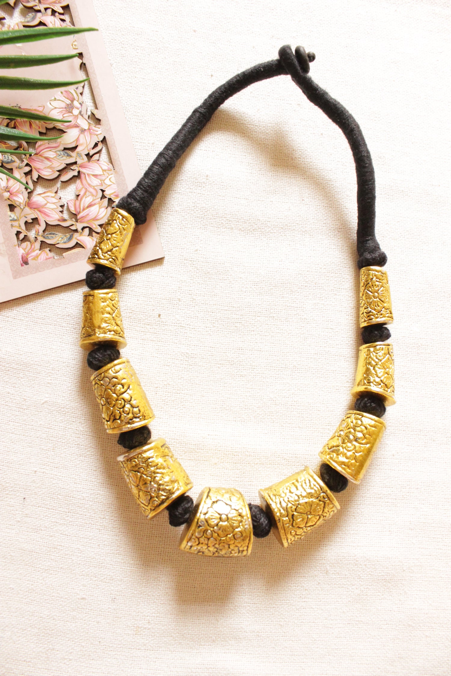 Cotton Thread and Metal Alloy Beads Matt Gold Finish Necklace