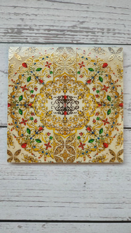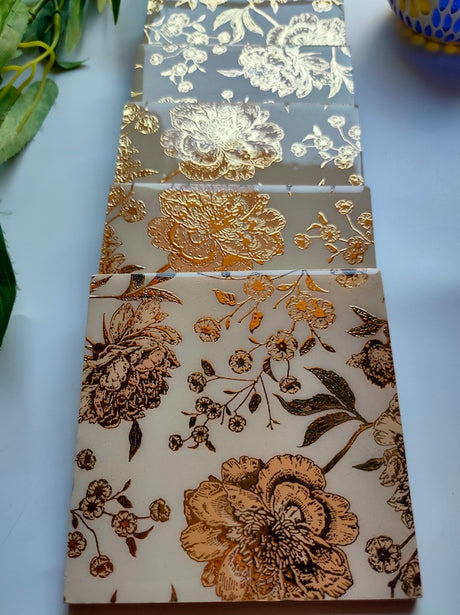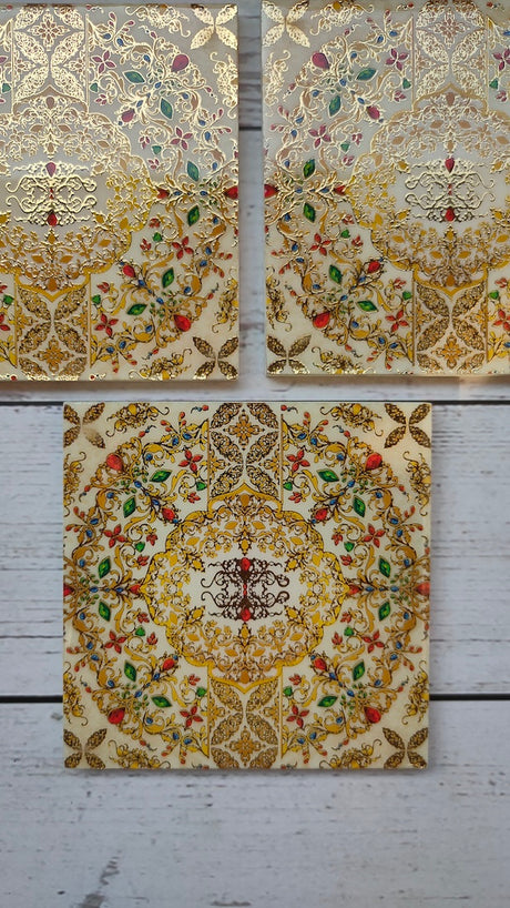 Peach Square Coasters with Gold Detailing and Stones (Set of 6)