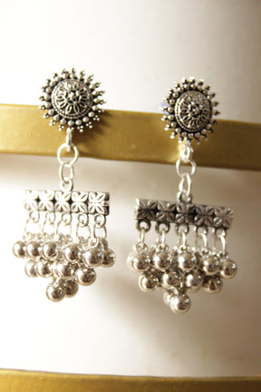 Ghungroo Beads Embellished Oxidised Finish Sun Motif Dangler Earrings is backordered and will ship as soon as it is back in stock.