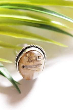 Shaded White & Brown Glass Stone Embedded Oxidised Finish Adjustable Ring