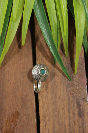 Green Center Stone Embedded Spiral Oxidised Finish Clip On Nosepin