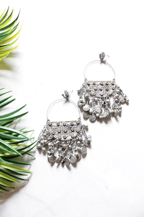Oxidised Finish Stamped Coins and Ghungroos Embellished Hoop Earrings