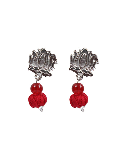 Stringed Glass Beads and Charms Statement Flower Motif Metal Pendant Necklace Set