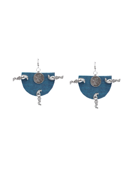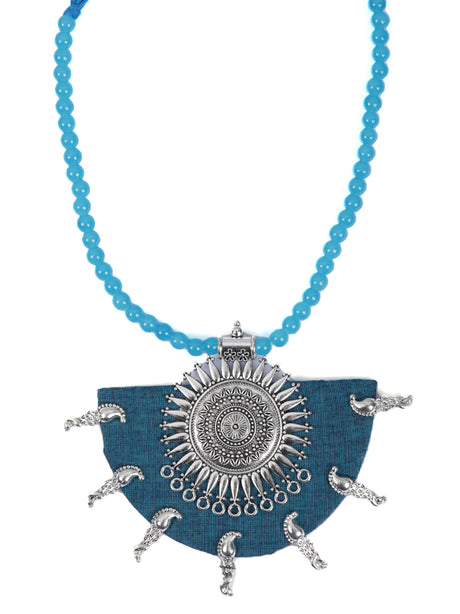 Half Moon Warrior Fabric Necklace Set Accentuated with Metal Charms