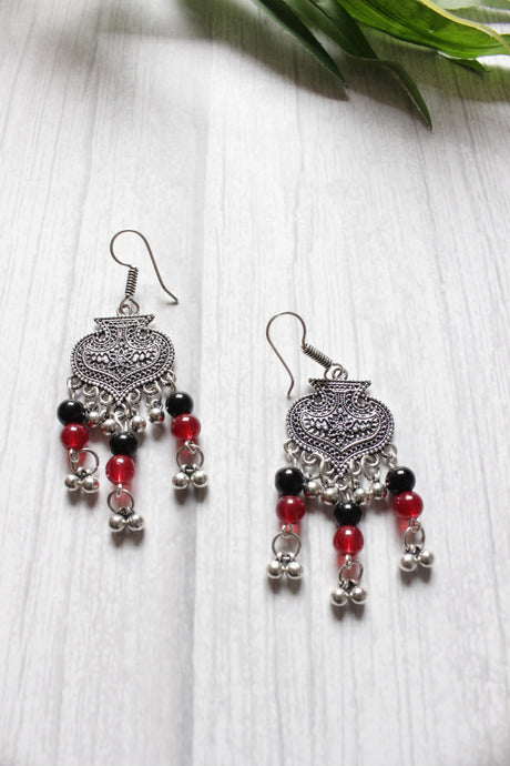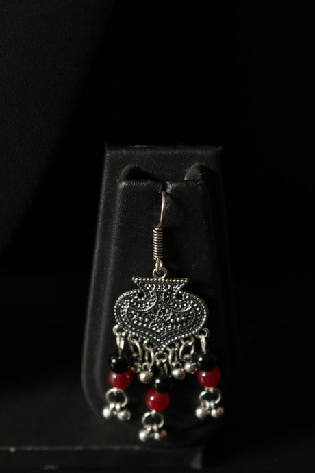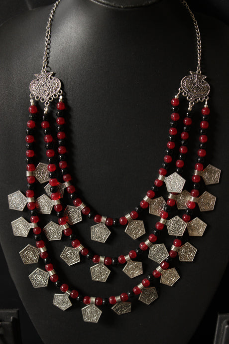 Afghani Glass Beads Stamped Coins Necklace Set with Black & Red Glass Beads
