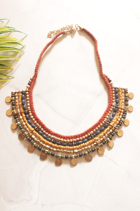 599 INR699Unit price /UnavailableVery low stock (1 unit)Earthen Glow Beaded Coin Statement Necklace