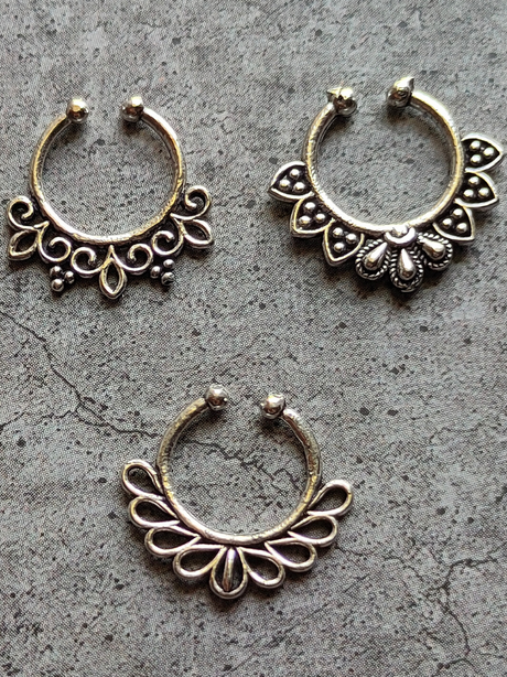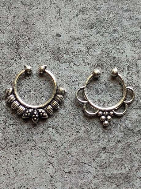250 INR400Unit price /UnavailableSet of 2: Premium Oxidised Finish Pure Silver Clip On Septum Ring Nosepins