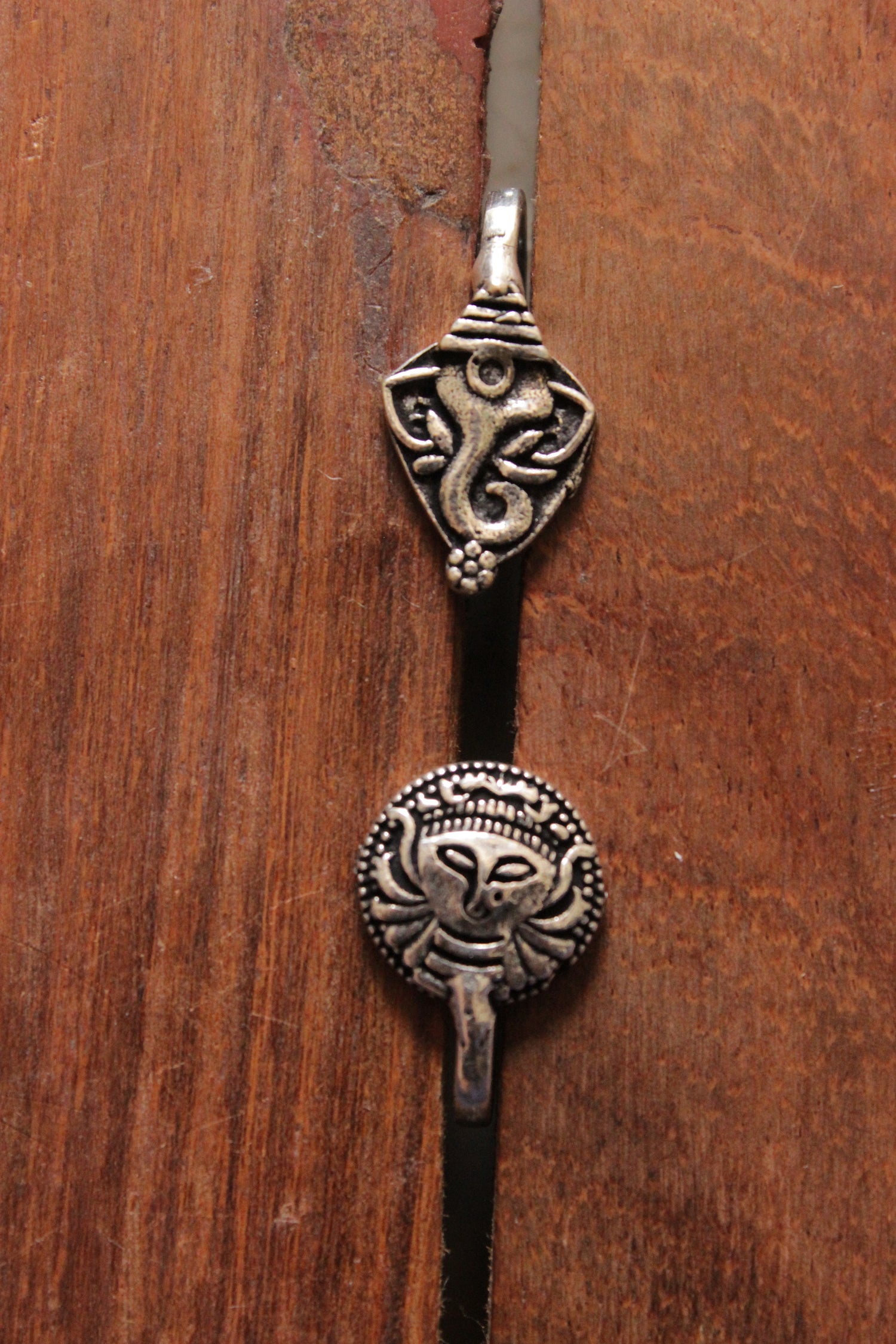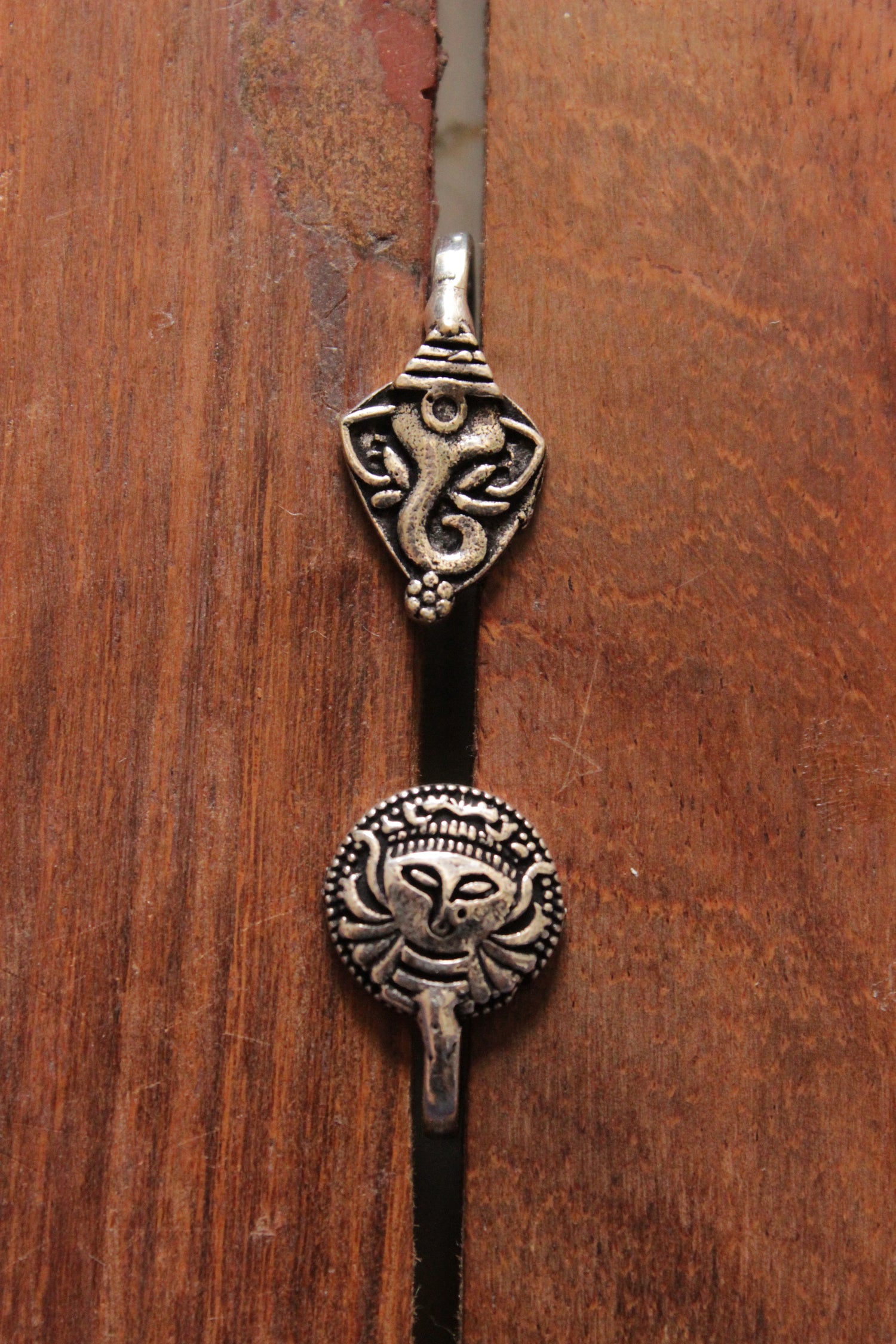 Set of 2 Religious Motifs Oxidised FInish Brass Clip-On Nosepins
