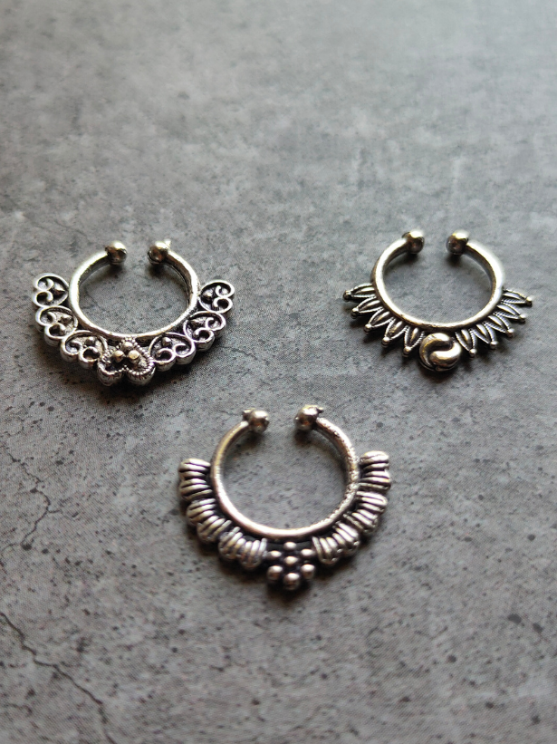 Three Oxidised Silver Tribal Septum Nosepins