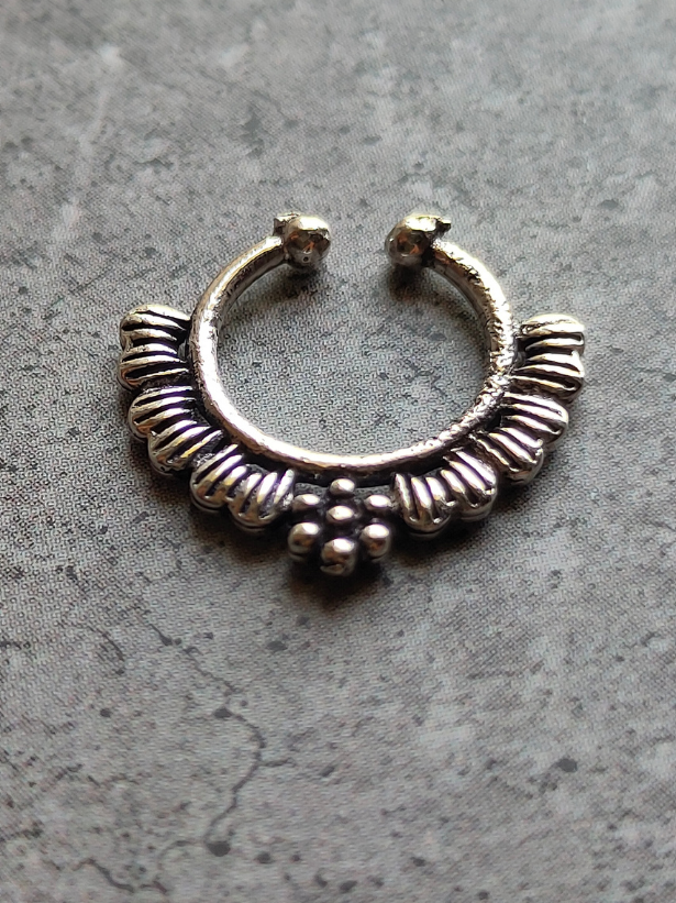 This round nose pin suits any face type and adds a bohemian vibe to your whole ensemble. Flaunt with traditional dresses for an ethnic look and pair with western dresses for a quirky, cool look.