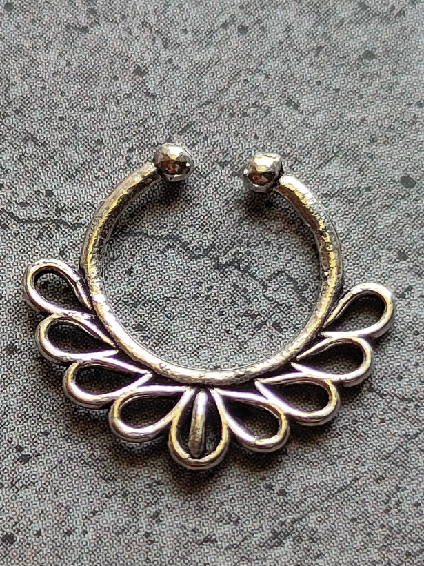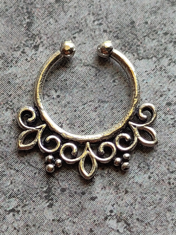 Three Oxidised Silver-Plated Stone Studded Tribal Septum Nosepins - Silver / German Silver is backordered and will ship as soon as it is back in stock.