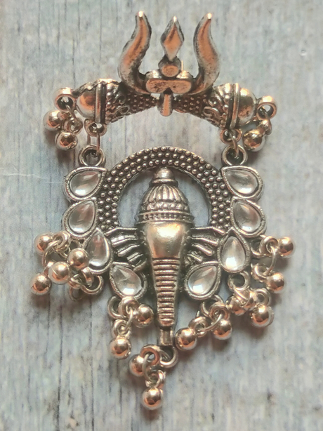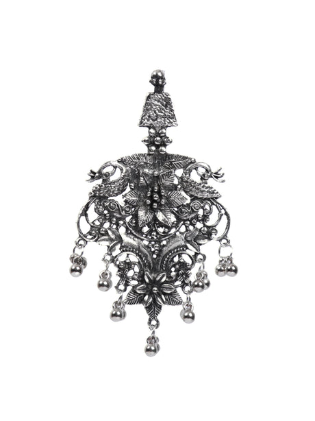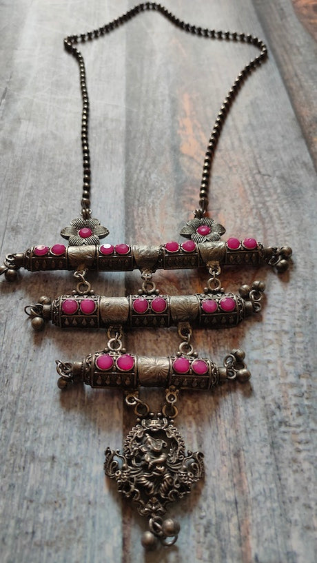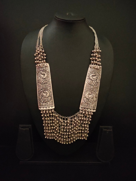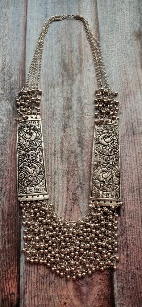 2 Layer Pendant Ghungroo Beads Embellished Oxidised Finish Elaborate Metal Necklace Set