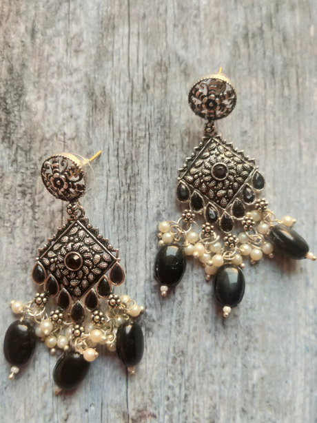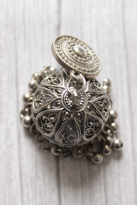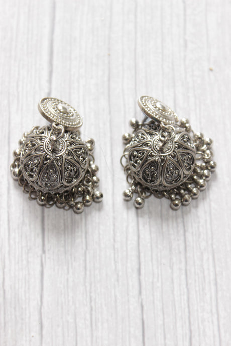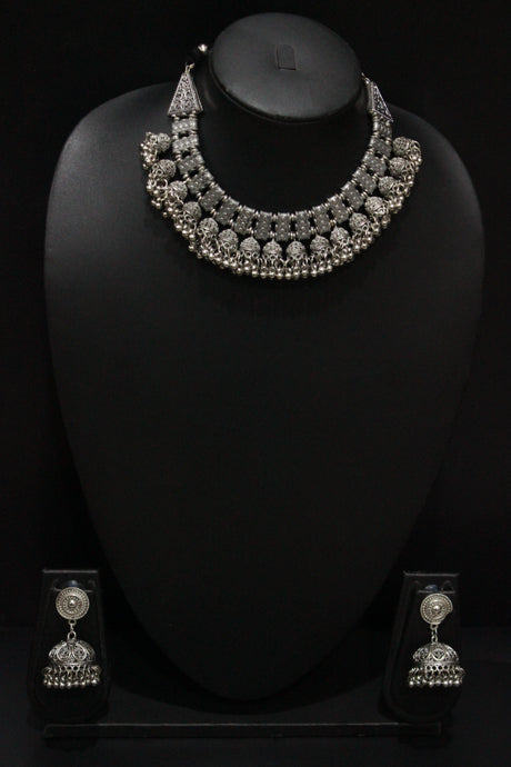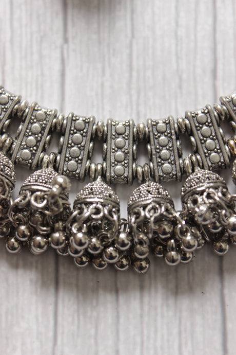 Oxidised Finish Choker Necklace Set Accentuated with Jhumkas