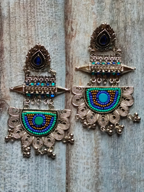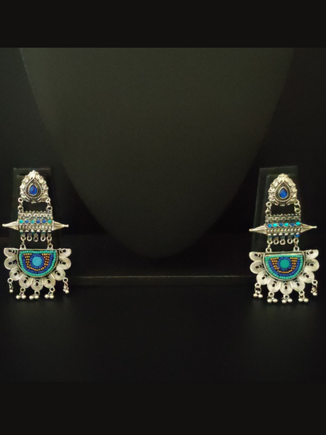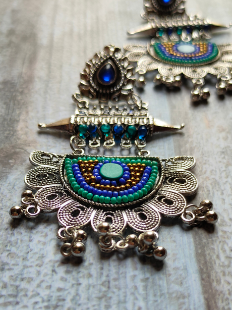 Sale price 400 INR Regular price 600Unit priceUnavailable Oxidised Silver Turquoise and Blue Beads Necklace Set