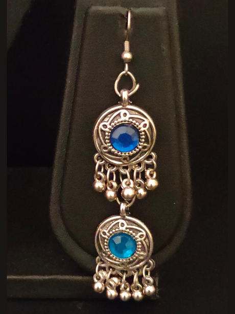 3 Layer Blue Stones Oxidised Silver Necklace Set with Thread Closure