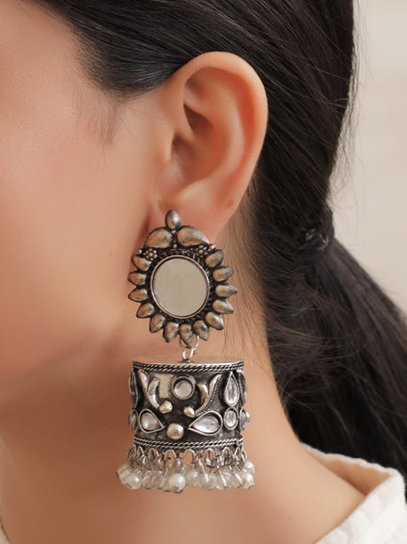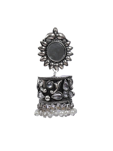Mirror Work Jhumka Earrings with Metal Trinkets and Beads
