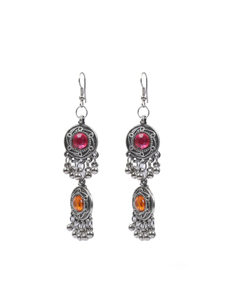 Multi-Color Enamel Painted Silver Finish Long Afghani Necklace Set