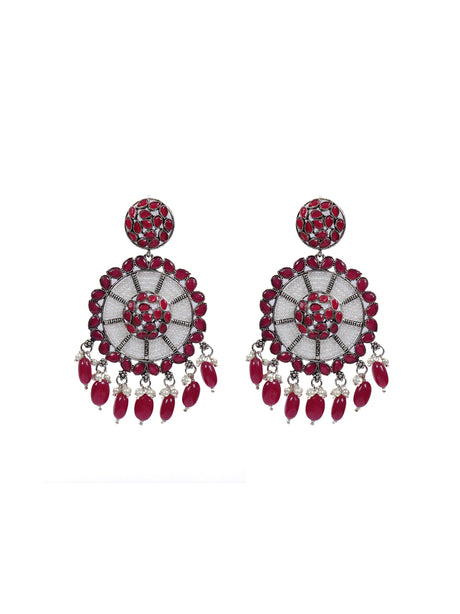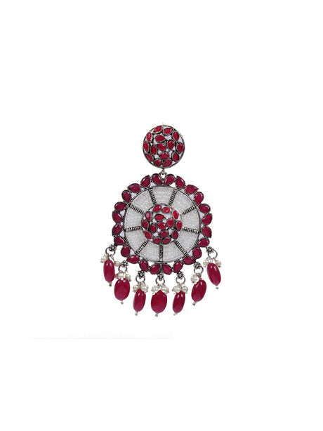 Pink Rhinestones Embedded Circular Dangler Earring with White Beads Detailing
