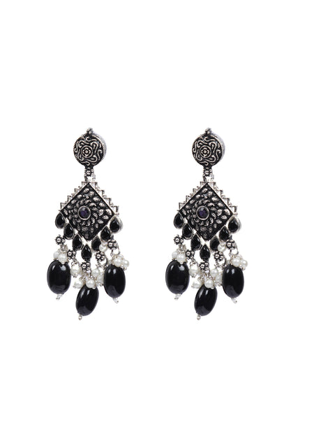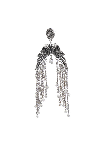 Long Dangler Jhumka Earrings with Rhinestones and White Beads