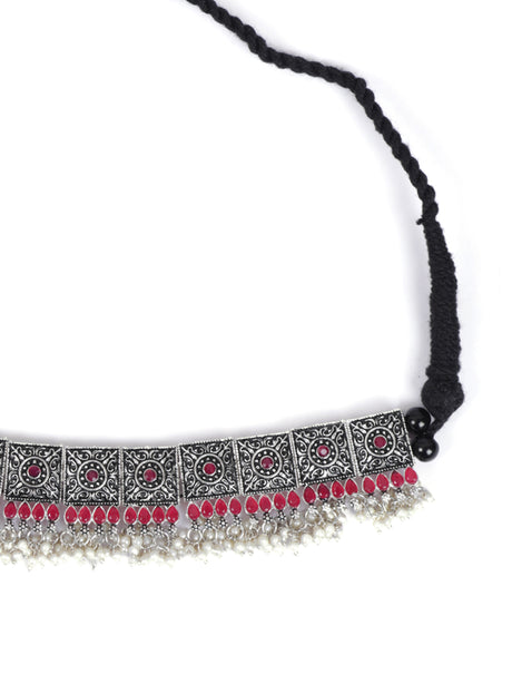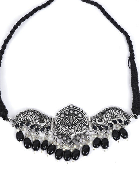 Oxidised Finish Intricately Detailed Adjustable Length Choker Necklace