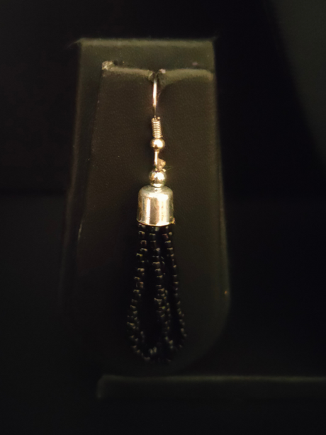 3 Layer Black Beads Necklace with Metal Accents and Adjustable Thread Closure