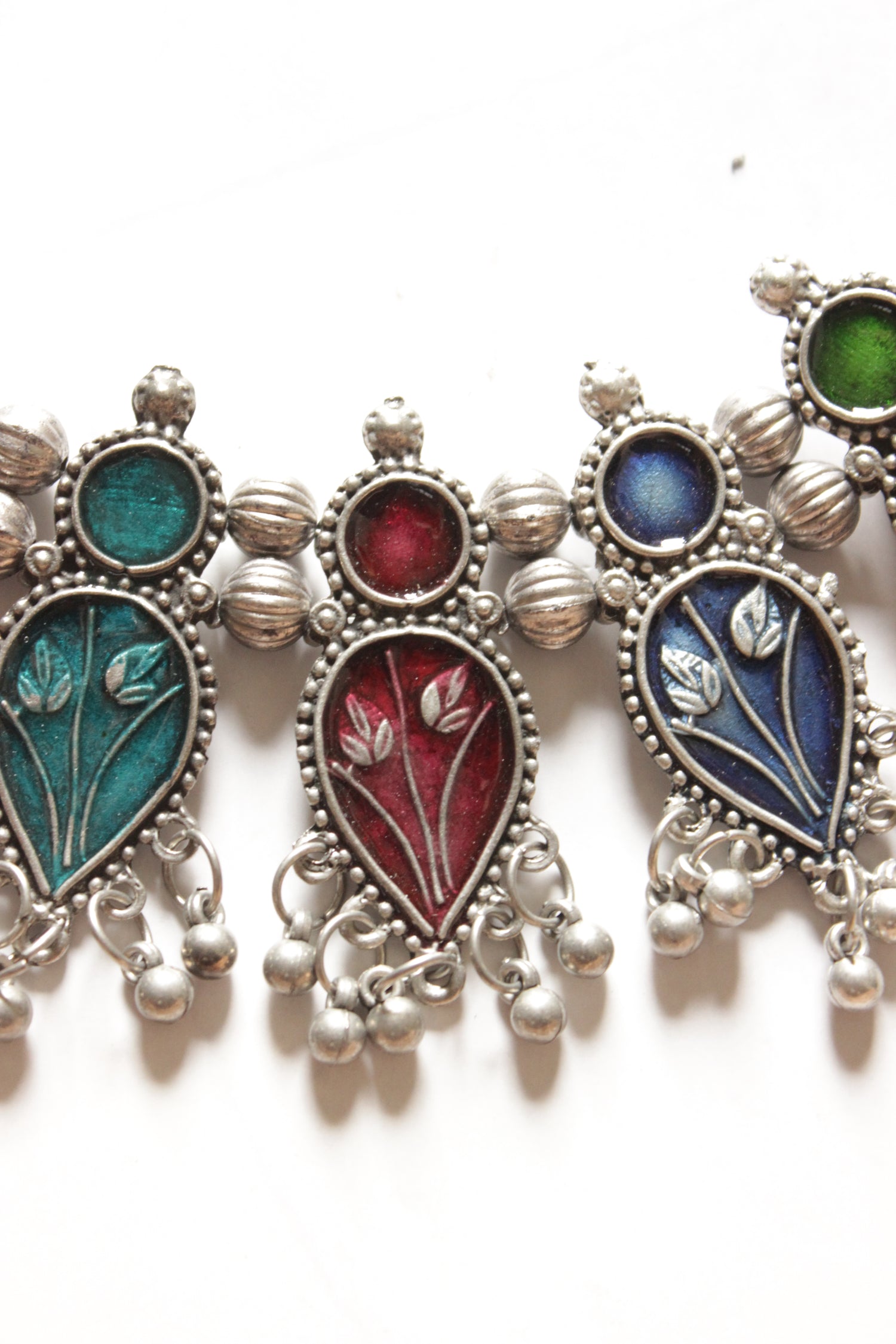 Multi-Color Enamel Painted Choker Necklace Set with Ghungroo Beads