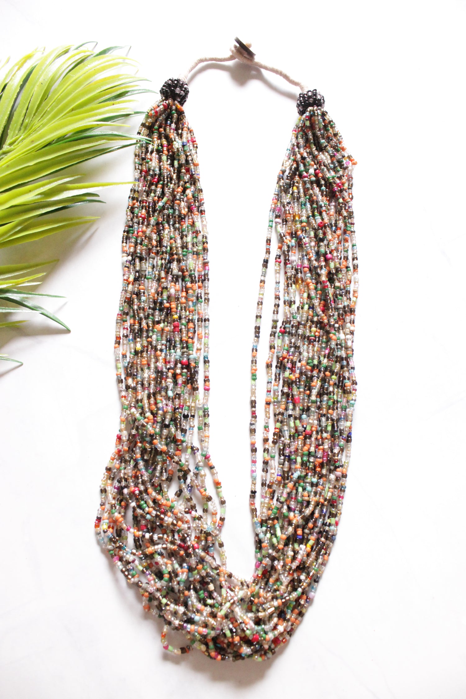 Multi-Color Multi-Layer Hand Braided Necklace with Button Closure