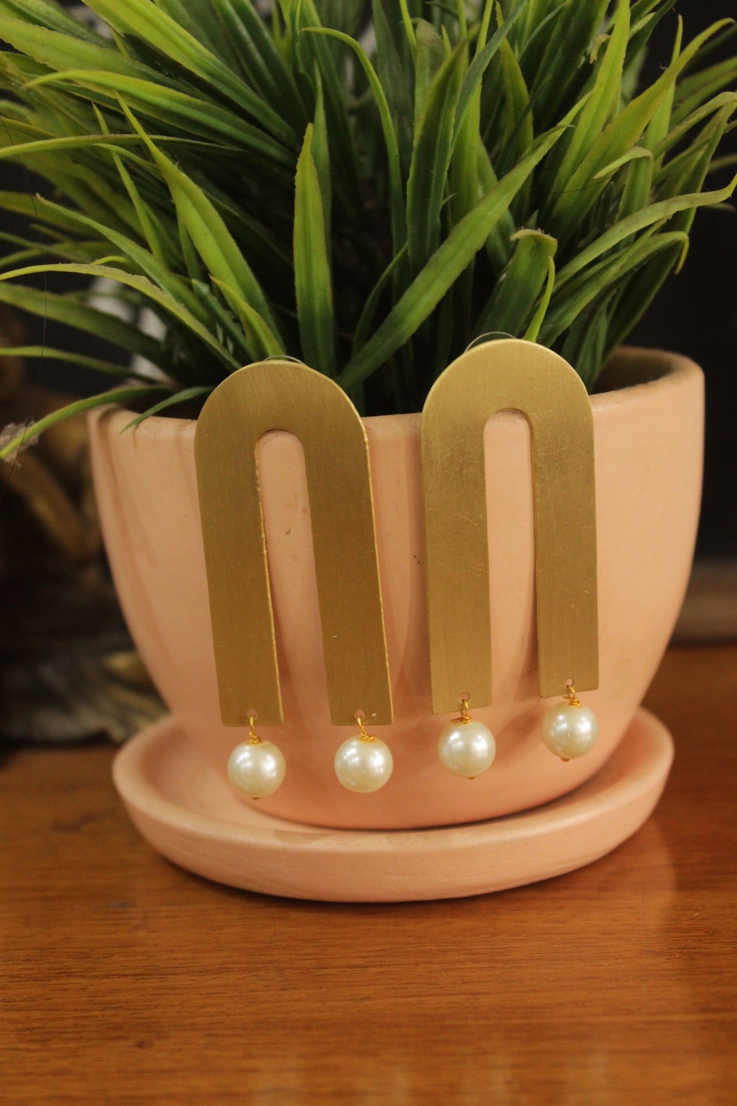 Pearl Gemstone Gold Finish Horse Shoe Brass Earrings