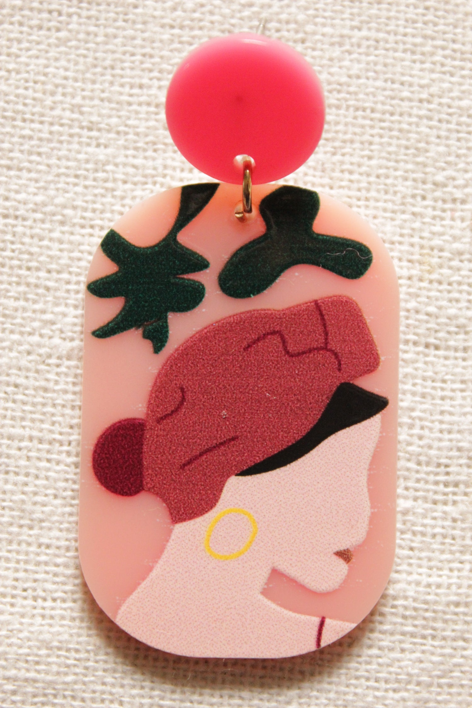 Shades of Pink and Green Woman Face Printed Acrylic Earrings – A Local Tribe