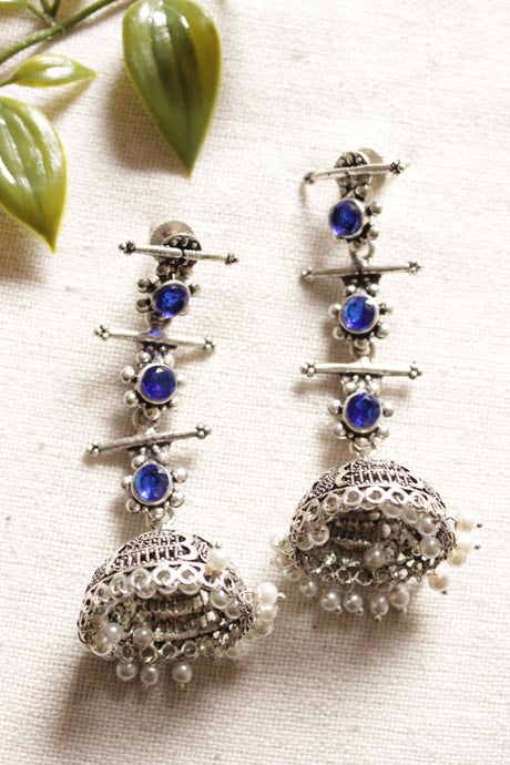 450 INR799Unit price /UnavailableOxidised Finish Purple Glass Stones Embedded Ethnic Long Jhumka Earrings