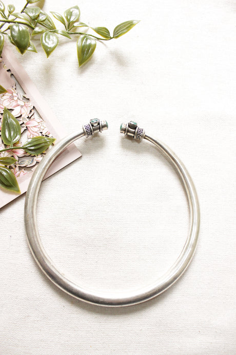 475 INR600Unit price /UnavailableSmooth Premium Silver Finish Adjustable Choker Hasli with Green Stone