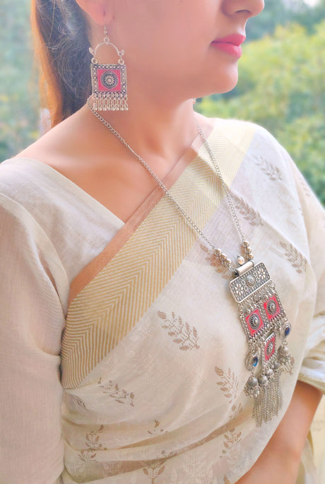 400 INR500Unit price /UnavailableDual Tone Oxidised Finish Rhinestones Embedded Long Necklace Set