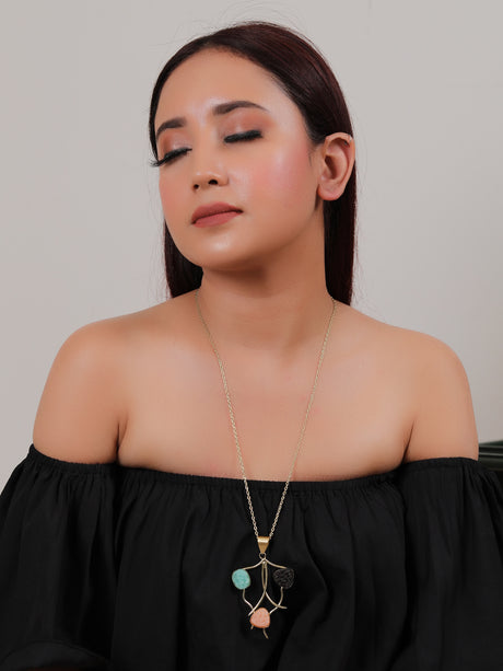 525 INR700Unit price /UnavailablePink, Blue and Black Natural Sugar Druzy Gemstones Embedded Silver Finish Warrior Necklace