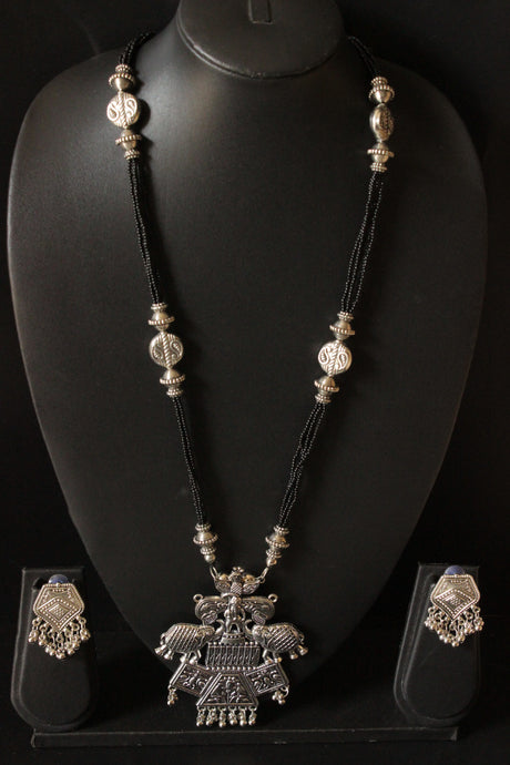 400 INR549Unit price /UnavailableStringed Black Beads Elephant Motif Pendant Long Necklace Set
